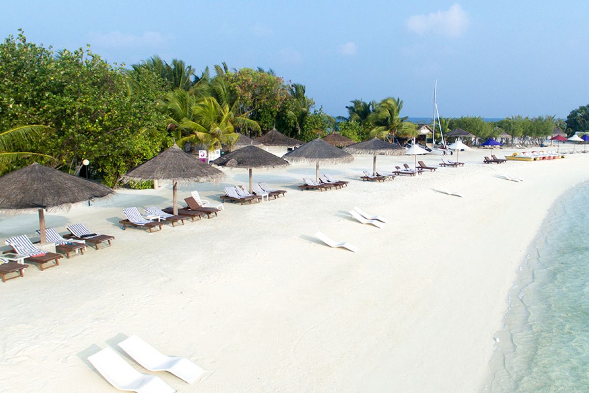 As the sky transforms from daylight to dusk, walk into the Rayvilla bar to catch the best sunset.